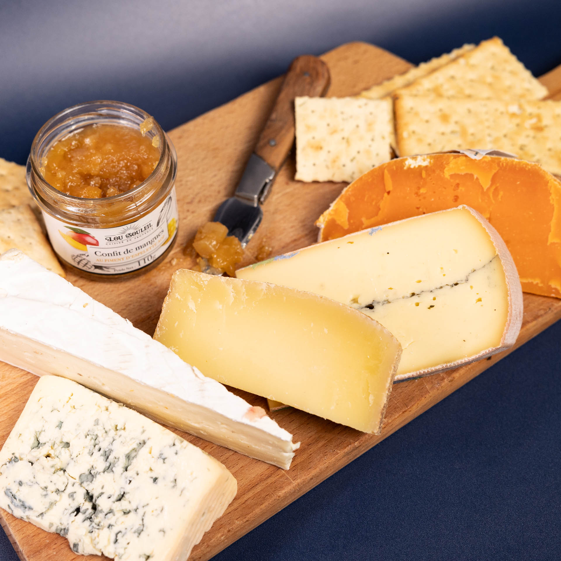 Odkryj zestaw serów, który zadowoli każde podniebienie! W jego skład wchodzą kremowy Brie, orzechowy Mimolette, pleśniowy Fourme d'Ambert, półmiękki Morbier oraz dojrzewający Comté. Całość wzbogacona jest konfiturą z mango i papryką Espelette, która nadaje wyjątkowy, słodko-pikantny akcent.