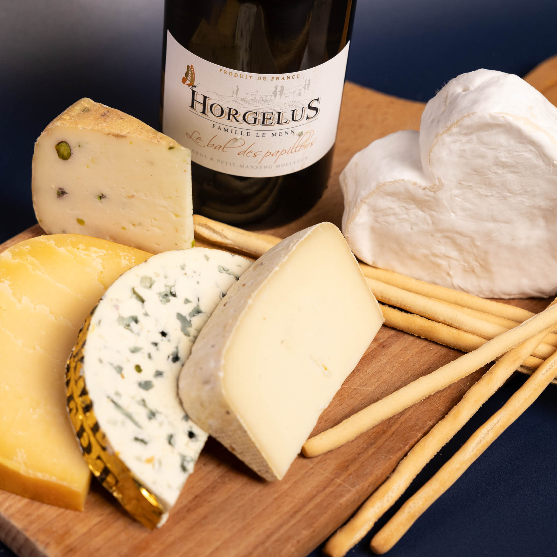 Rendez-vous to doskonały pomysł na romantyczną kolację, idealny na randki lub Walentynki. Lekkie, owocowe wino Domaine Horgelus Le Bal des Papillons świetnie komponuje się z serami, takimi jak kremowa Gorgonzola Dolce czy intensywna Gouda Old Amsterdam, a chrupiące grissini i figowa konfitura dodają delikatnej słodyczy i elegancji.