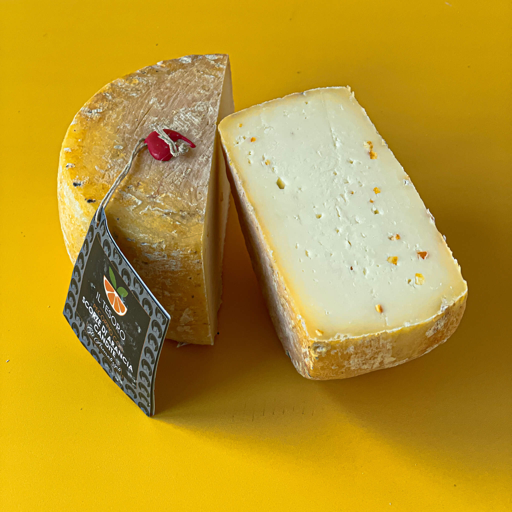 Pecorino stagionato con pistacchio to wyjątkowy ser, który powstaje z najwyższej jakości mleka owczego z Sycylii. Jego charakterystyka obejmuje intensywny, głęboki smak, typowy dla dojrzałego pecorino, oraz subtelne nuty słodyczy i delikatności pistacji.