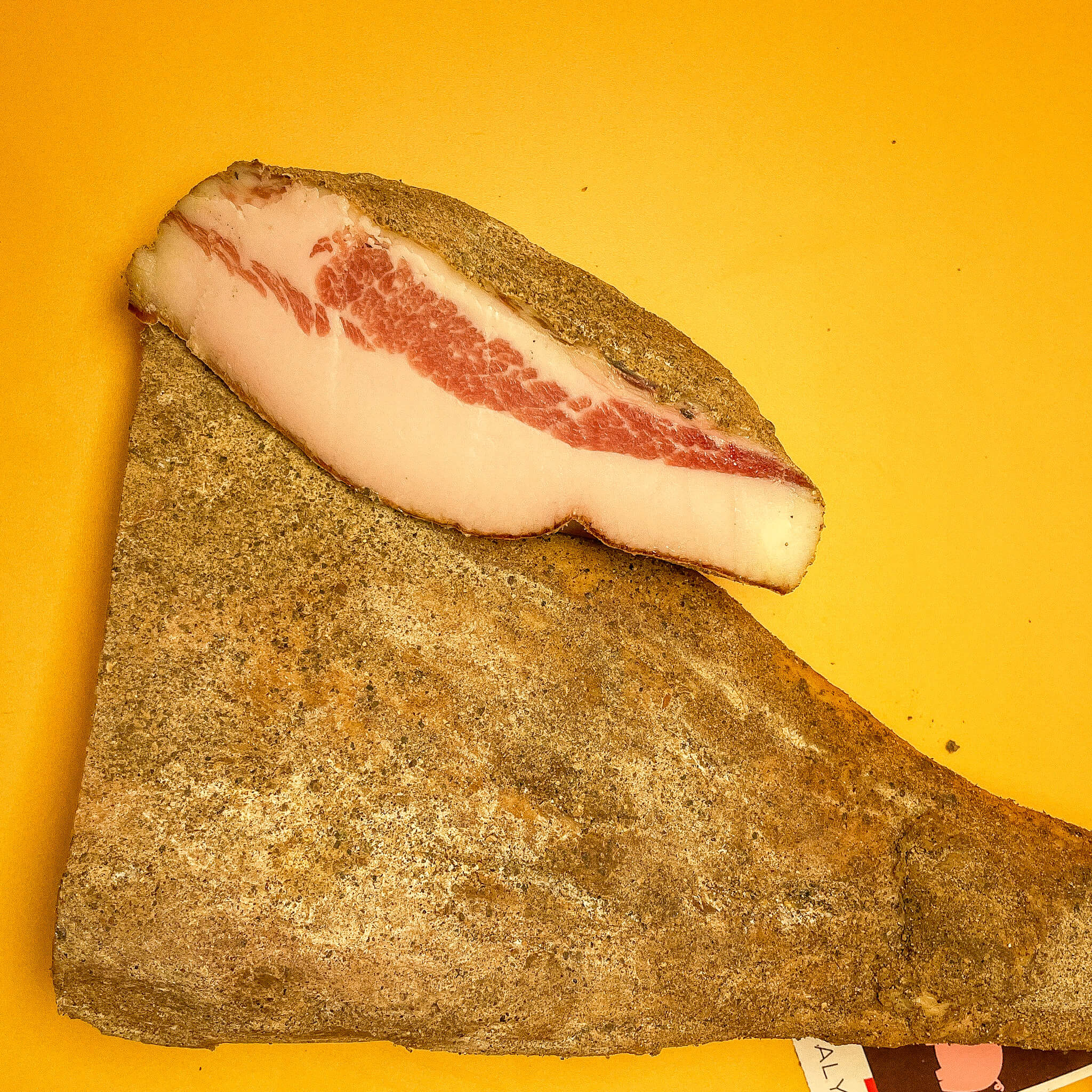 Guanciale al pepe | policzki wieprzowe z pieprzem wysyłamy w jednym kawałku. Istnieje możliwość pokrojenia w plasterki, w takim wypadku prosimy o napisanie tego w uwagach.