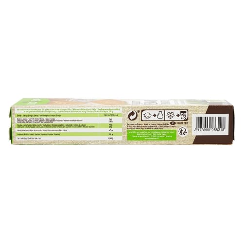 Skład: Mąka pszenna* i orkiszowa* (16,5%), cukier*, olej słonecznikowy*, sezam* 11%, skrobia pszenna, odtłuszczone mleko w proszku*. Substancje spulchniające: (węglany amonu i sód), nierafinowana sól morska, naturalny aromat waniliowy , przeciwutleniacz: ekstrakty z rozmarynu*.