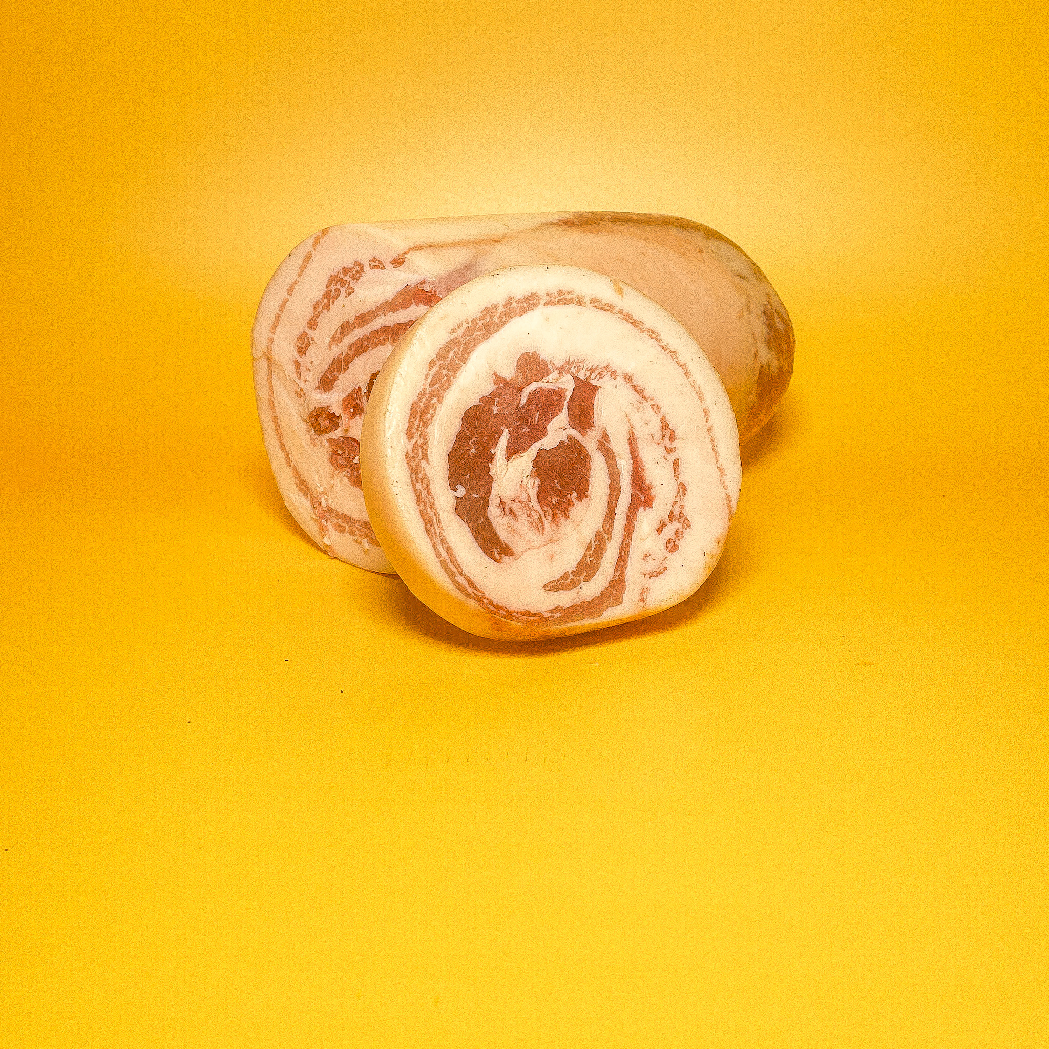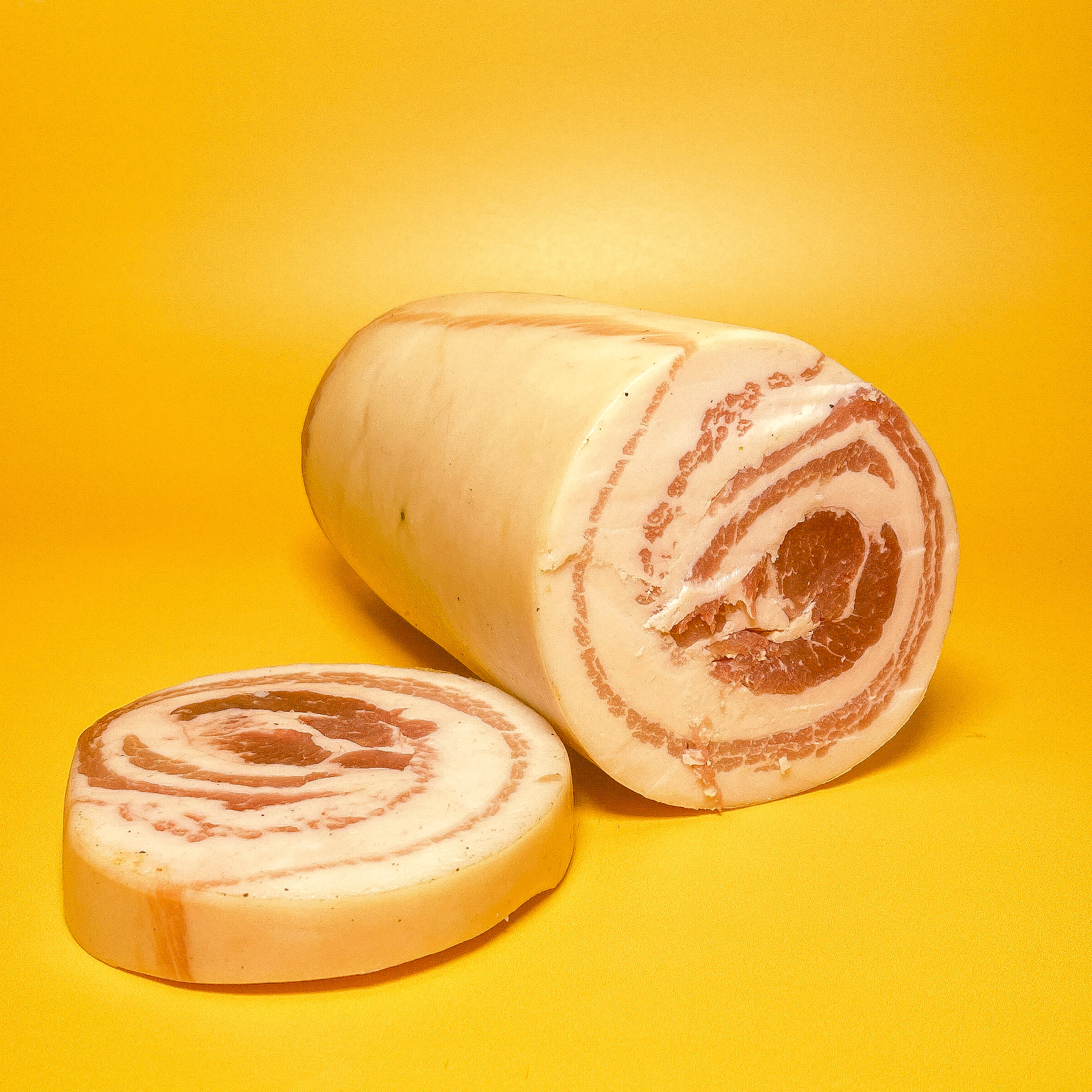 Pancetta Arrotolata to jedna z najbardziej popularnych wędlin wieprzowych we Włoszech. Jest podobna do naszego boczku, z tą różnicą, że zwija się ją w formę rolady. Mięso kroi się w prostokątne kawałki, następnie naciera się solą i przyprawami. Dlatego po 15 dniach mięso się dokładnie myje się z resztek soli i przypraw, a po zwinięciu dojrzewa 80 dni. Mięso pancetta arrotolata ma delikatną, miękką i soczystą konsystencję. Jest to wędlina o umiarkowanej tłustości, w konsekwencji której sprawia, że jest bardzo popularna w kuchni włoskiej. Pancetta Arrotolata to wędlina o delikatnym smaku i wszechstronnym zastosowaniu w kuchni, gdzie wnosi subtelną pikantność jak i również aromat do potraw.