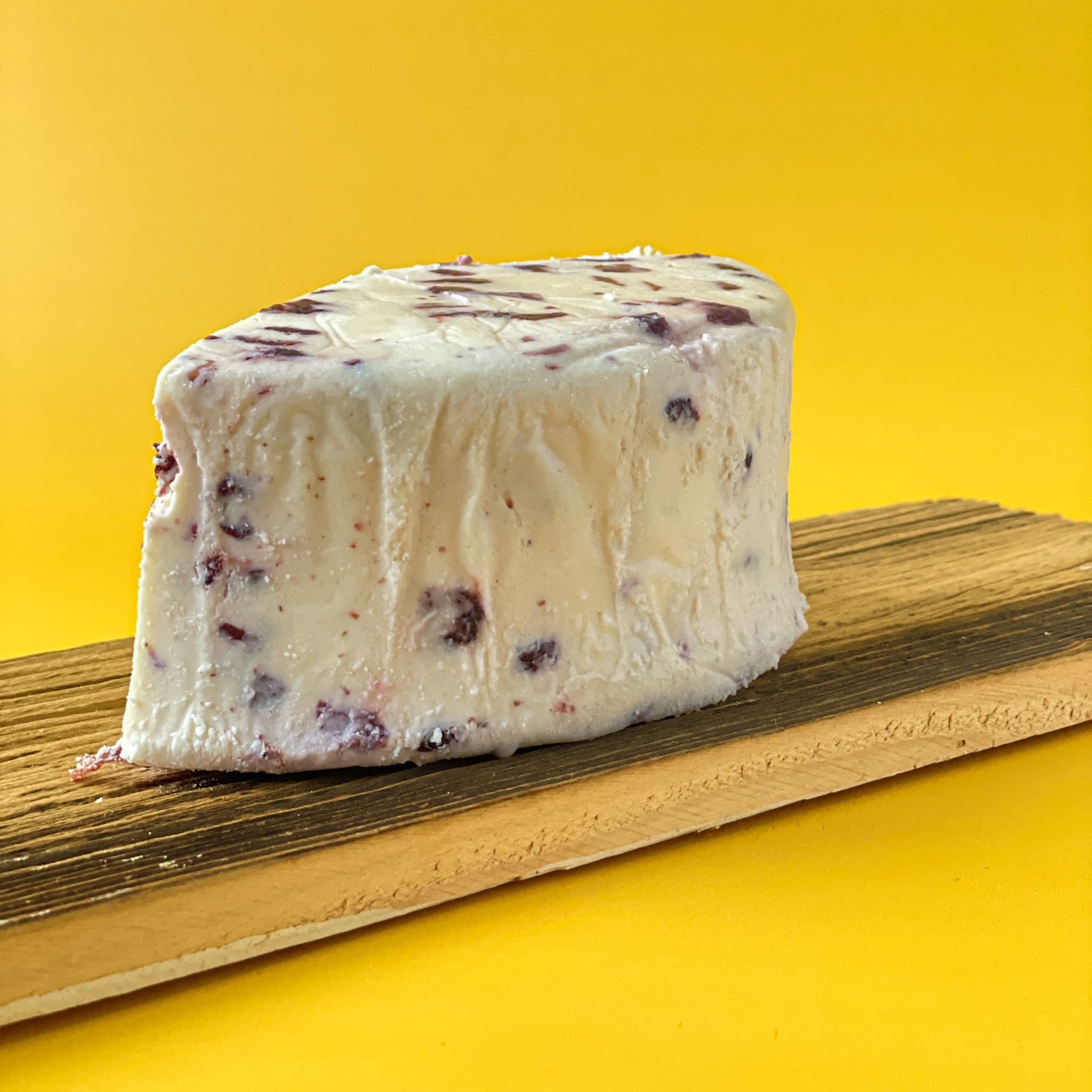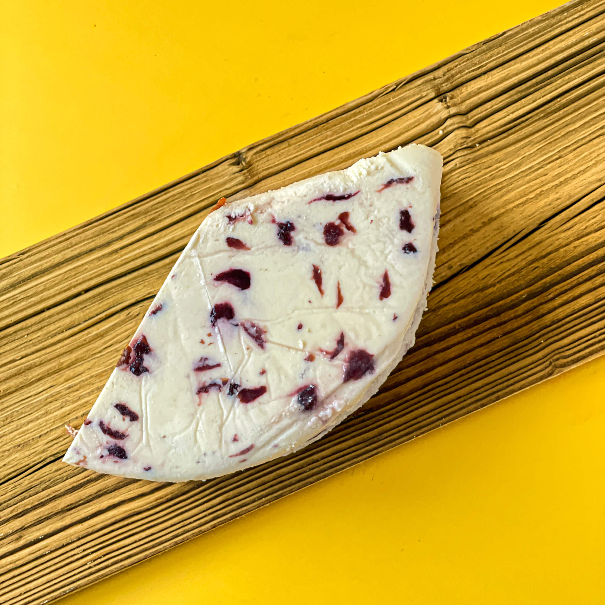 Ser angielski Wensleydale & Cranberries z dodatkiem żurawiny w smaku jest łagodny i lekko słodki. Ser ten ma naturalną kwasowość, która wspaniale komponuje się z owocami. Został starannie połączony z delikatną owocową soczystością słodkiej żurawiny.