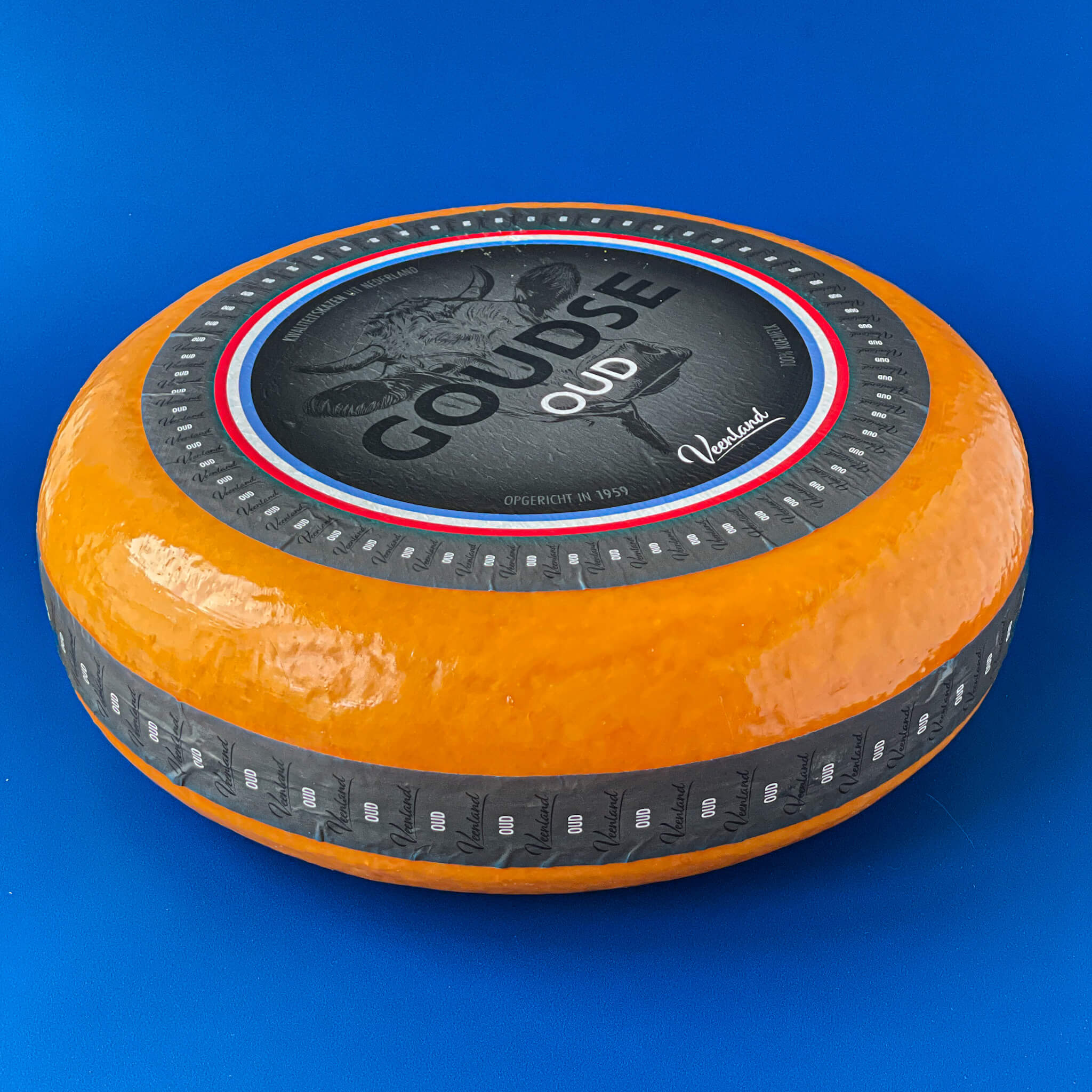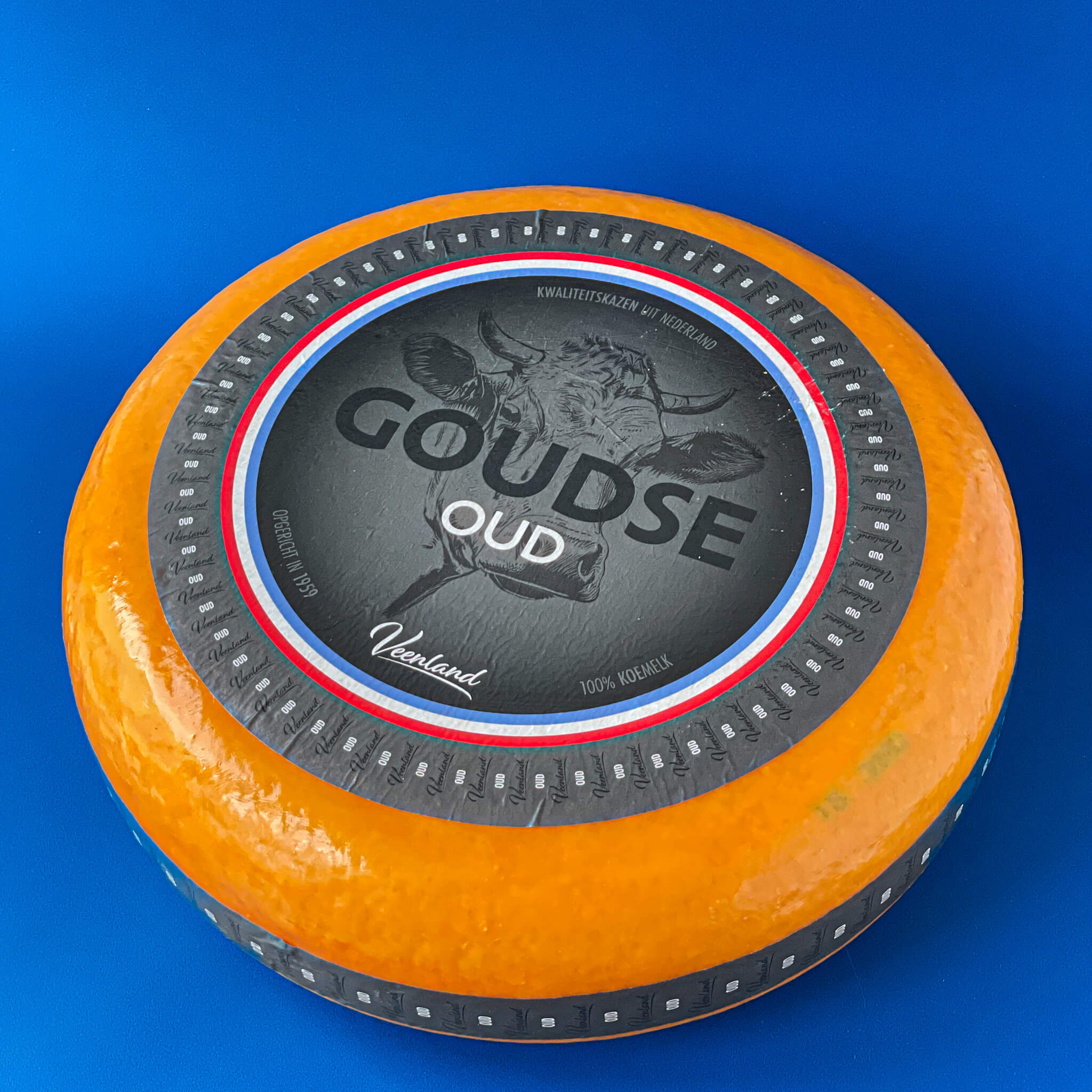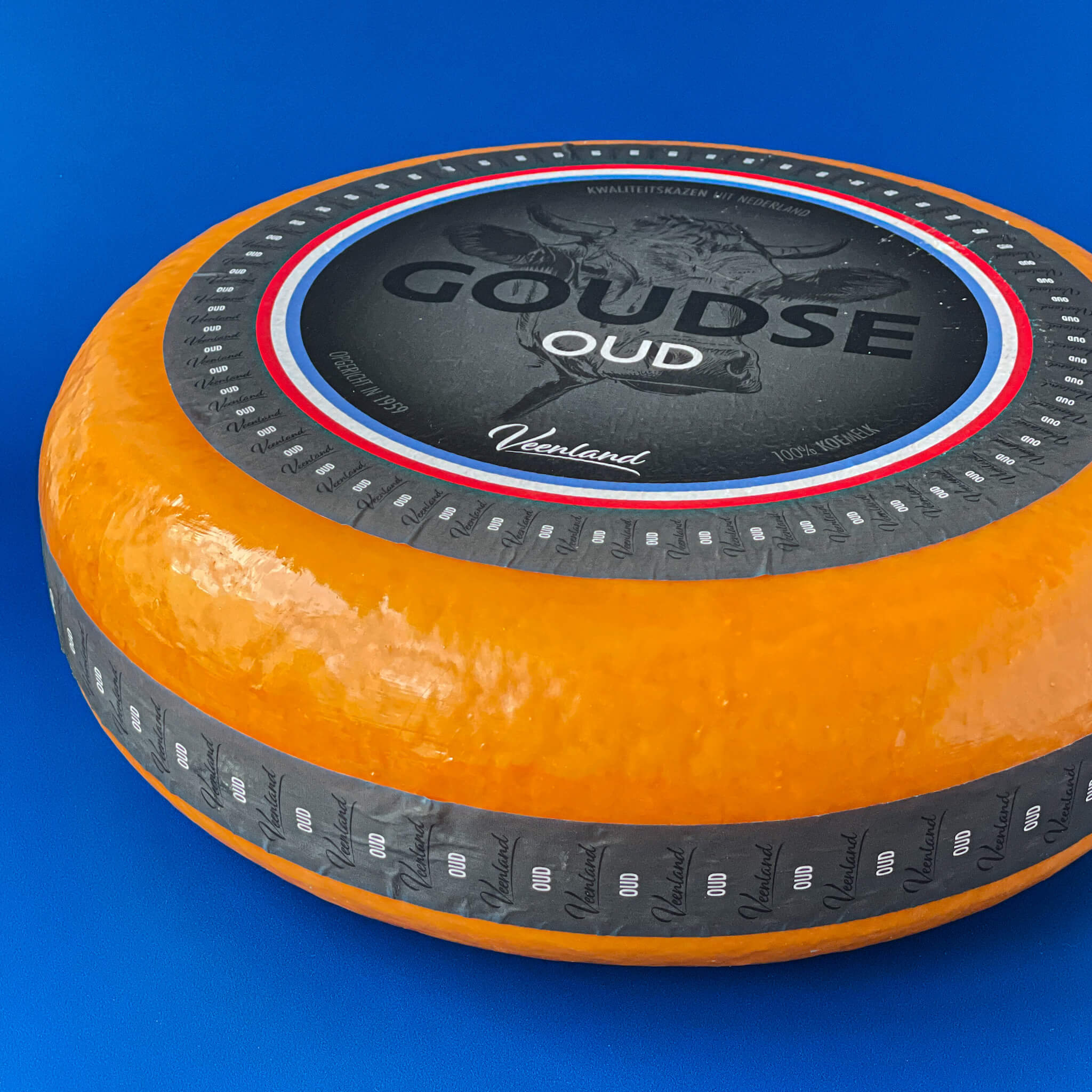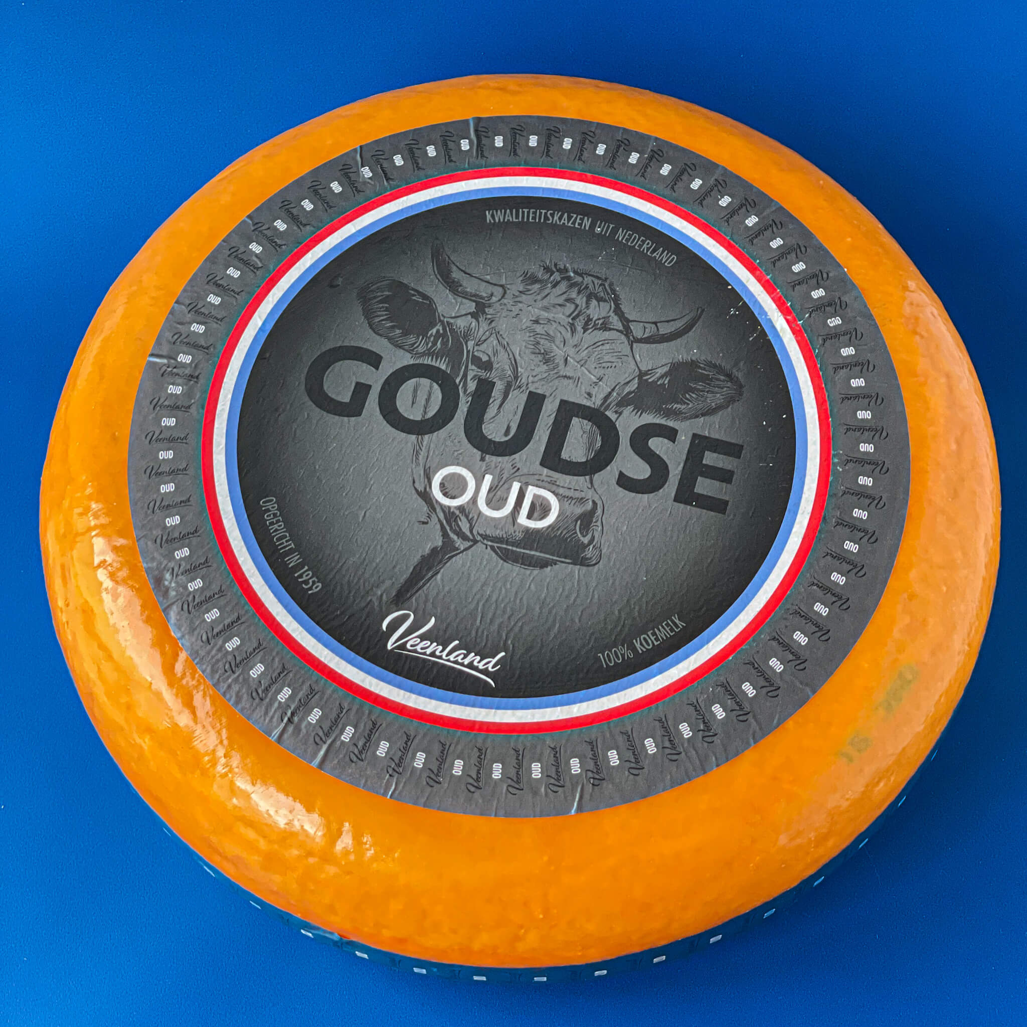 Ser holenderski Gouda długodojrzewający Veenland Gouda Extra Old 48+. Charakteryzuje się bogatymi nutami słodkawymi i karmelowymi, które równoważą się z delikatną nutą orzechową, słoną i lekko pikantnym posmakiem.
