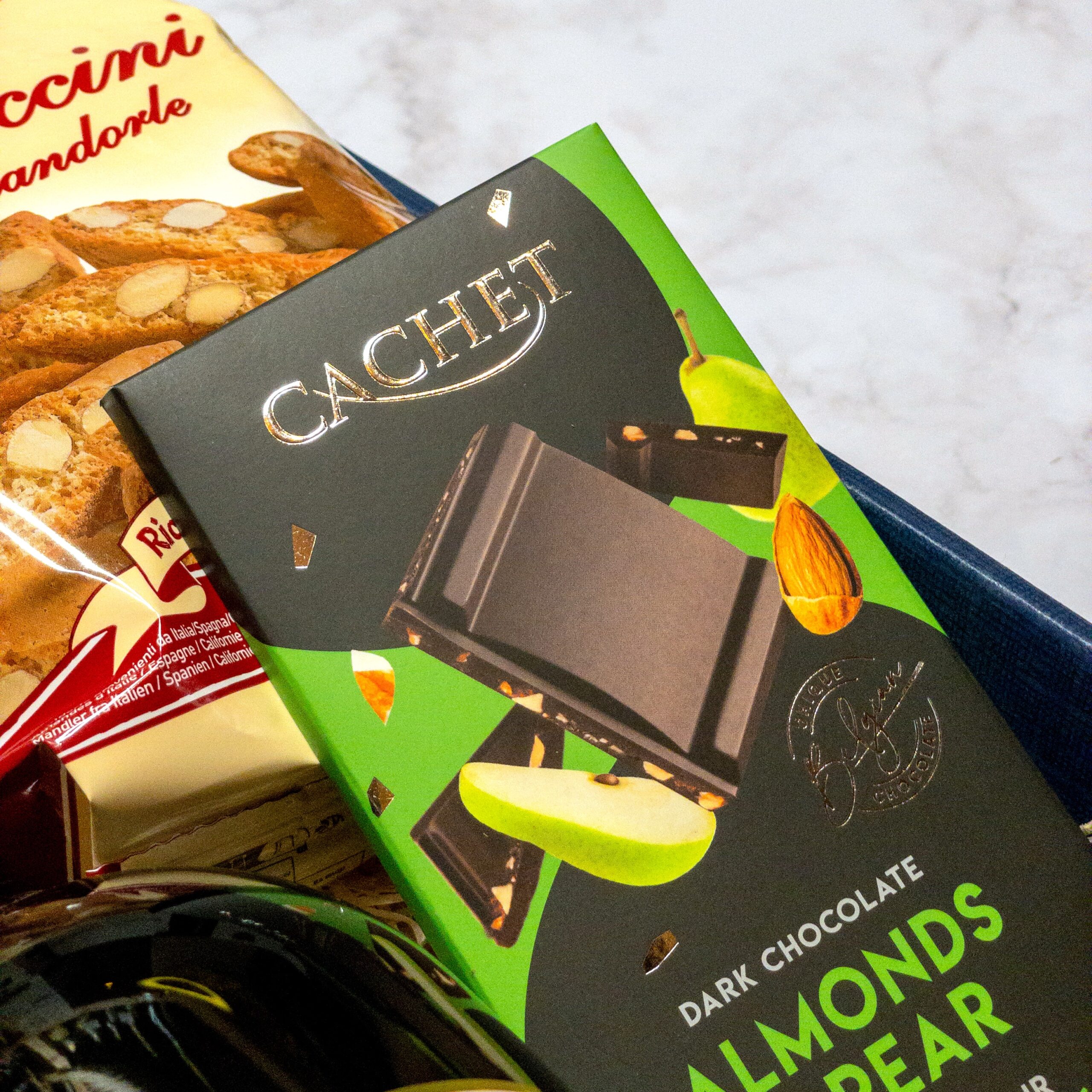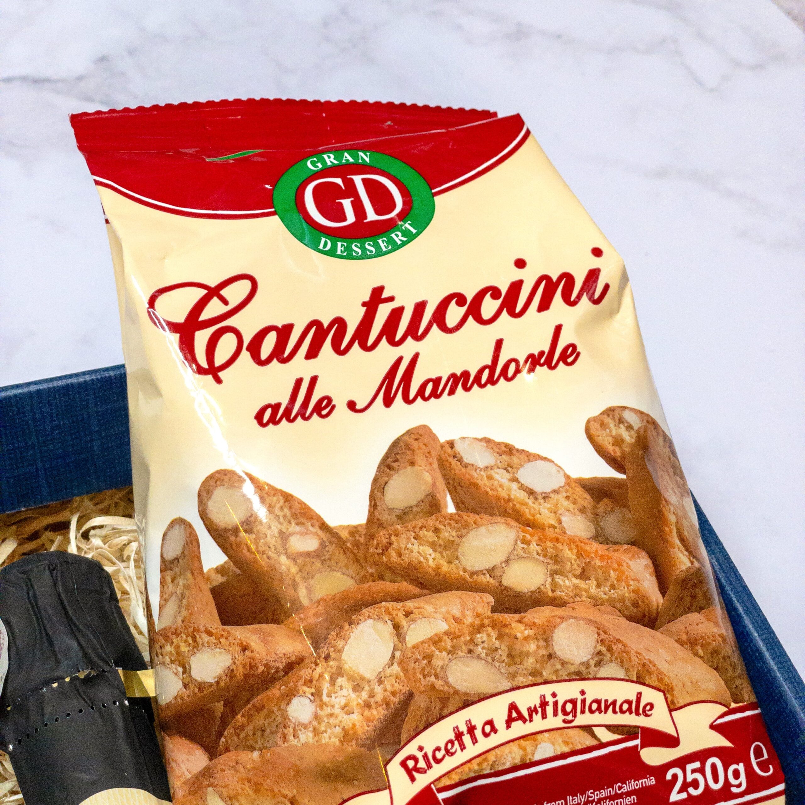 - Zestaw ten oferuje zrównoważoną kombinację smaków, co sprawia, że każdy element uzupełnia pozostałe. Chrupiące ciasteczka Cantuccini z nutami migdałów doskonale współgrają z delikatnym musującym Prosecco, podczas gdy czekolada deserowa z gruszką dodaje intensywności i słodyczy.