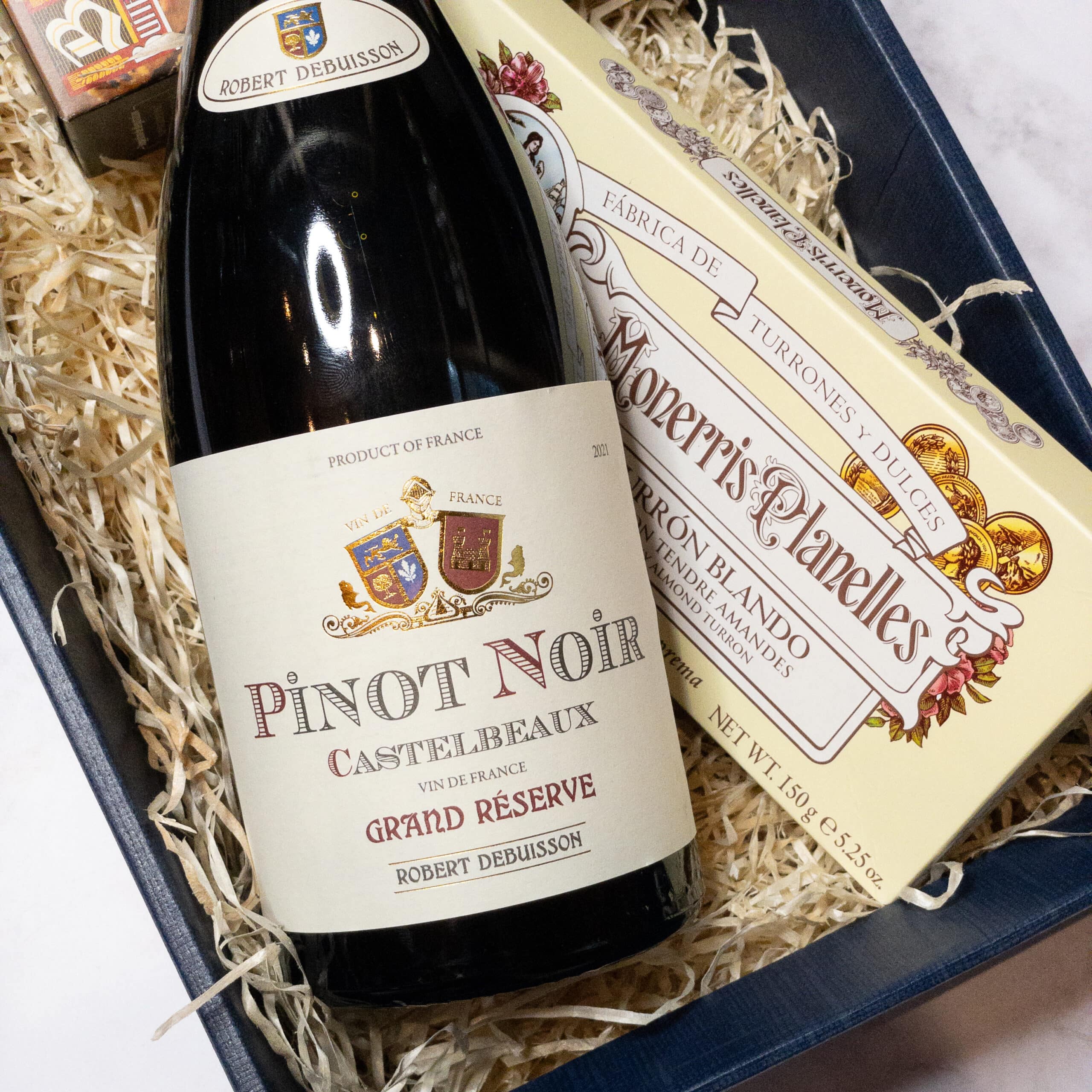 Wino na prezent w zestawie z nugatem i wytrawną przekąską