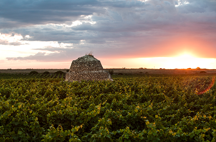 Dobrze przystosowana do produkcji skoncentrowanych, owocowych i pikantnych czerwonych odmian, Apulia (Puglia) to jedno z najcieplejszych, najbardziej wysuniętych na południe regionów Włoch. Mniej więcej w połowie regionu region przekształca się w Półwysep Salentyński. Na ten półwysep, otoczony z trzech stron wodą, w porze nocnej wieje wilgotna bryza morska. Przynosi ona przyjemny efekt chłodzenia w regionie, gdzie niewielkie opady deszczu stwarzają trudne warunki dla winorośli. Nazwa regionu pochodzi od włoskiego wyrażenia „a pluvia”, co oznacza „brak deszczu”. Primitivo przybyło do Włoch pod koniec XIX wieku i stało się ważną odmianą w gorącym, suchym południowym regionie Apulii. Tutaj nazwano go od łacińskiego słowa primativus, oznaczającego „pierwszy, który dojrzewa”.