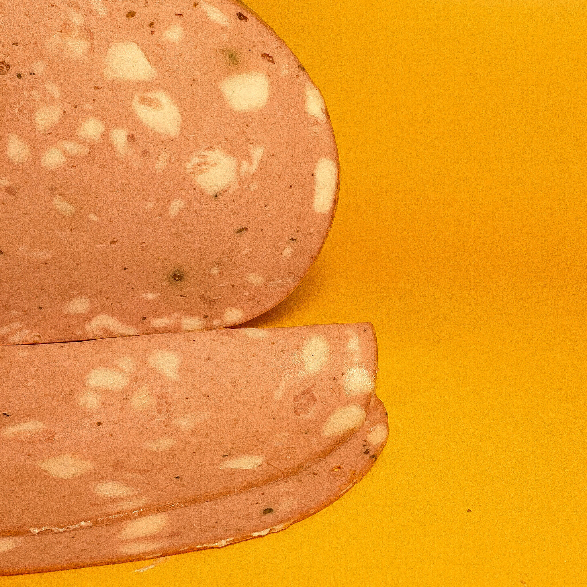 Włoska Mortadella Al Tartufo | Mortadella z truflą to delikatna i kremowa kiełbasa, w której intensywny smak trufli doskonale współgra z bogactwem aromatów mięsa wieprzowego.