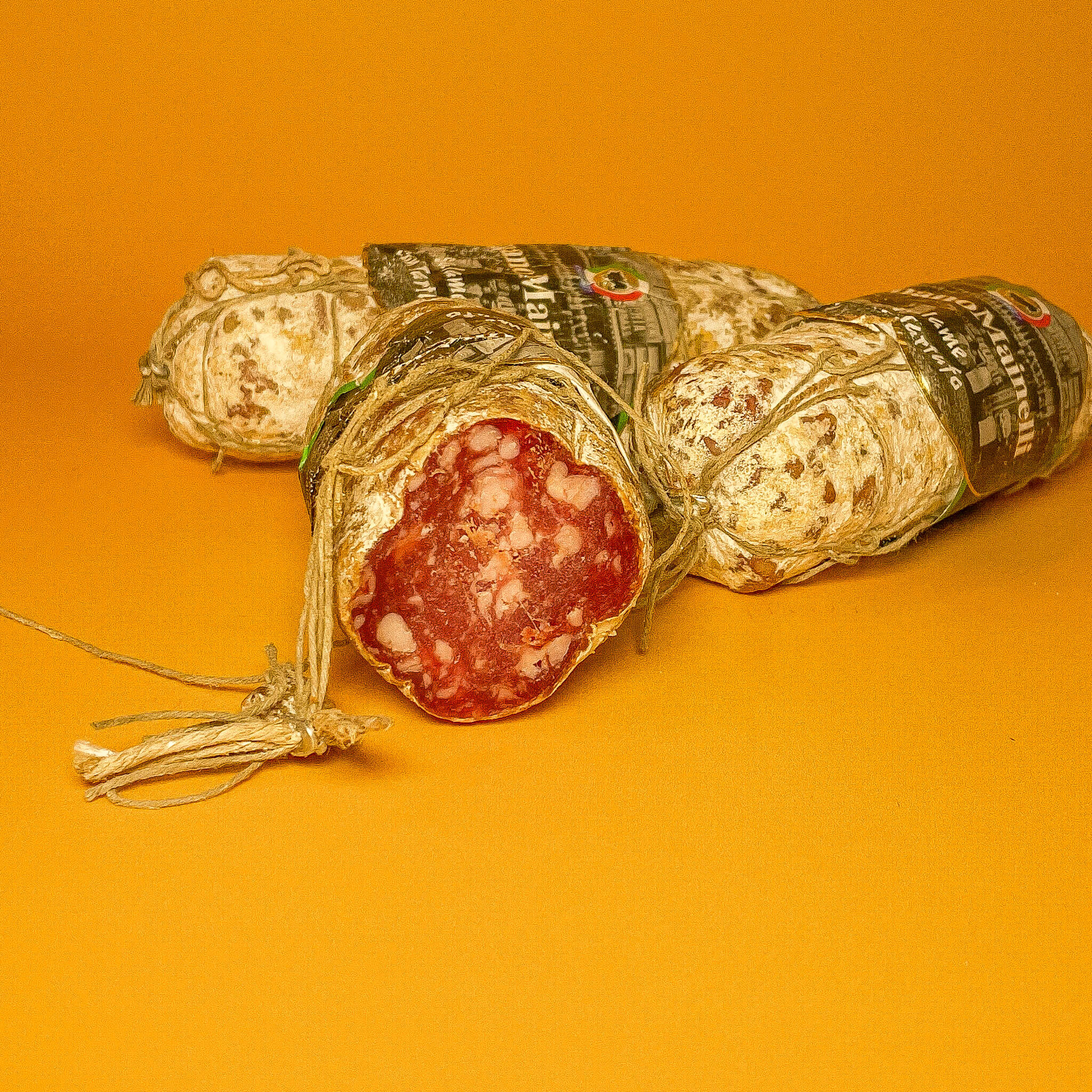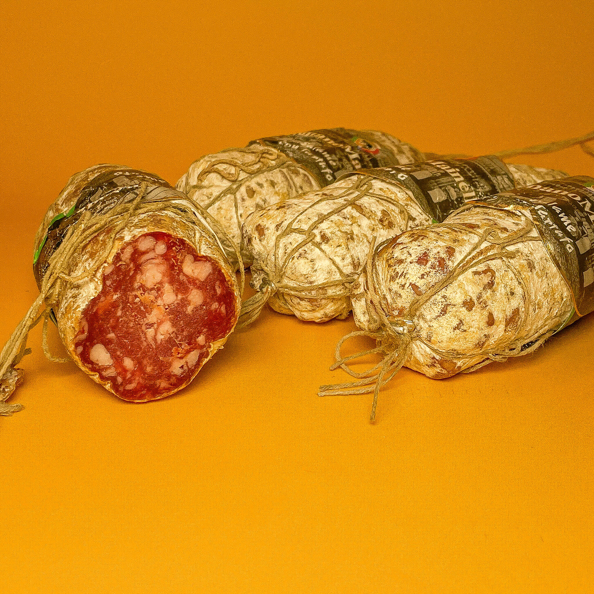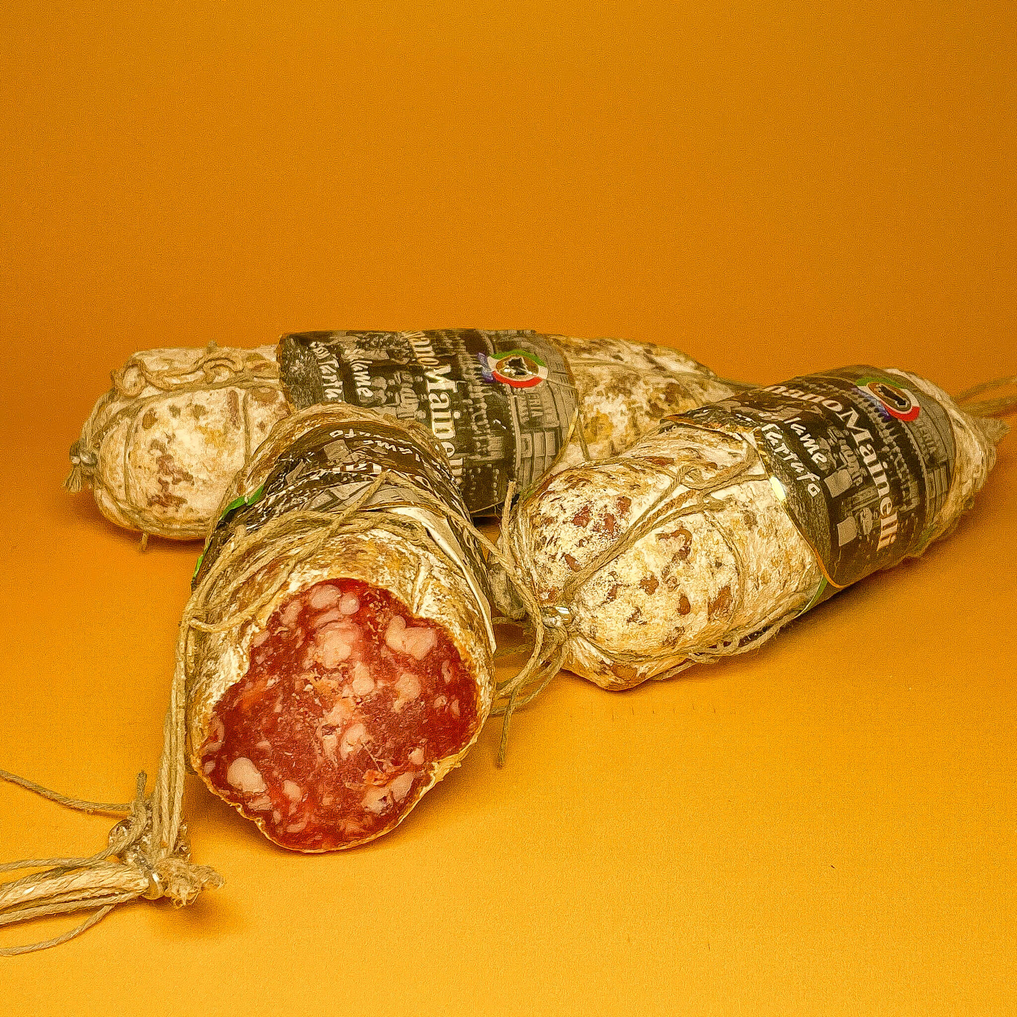 Włoskie salami z truflą | Salametto al tartufo charakteryzuje się wyjątkowym połączeniem intensywnego smaku tradycyjnego salami z delikatną nutą trufli. Smak tego wyjątkowego wędzonego mięsa jest bogaty, głęboki i pełen aromatycznych tonów, które doskonale współgrają z wyrazistym charakterem trufli.
