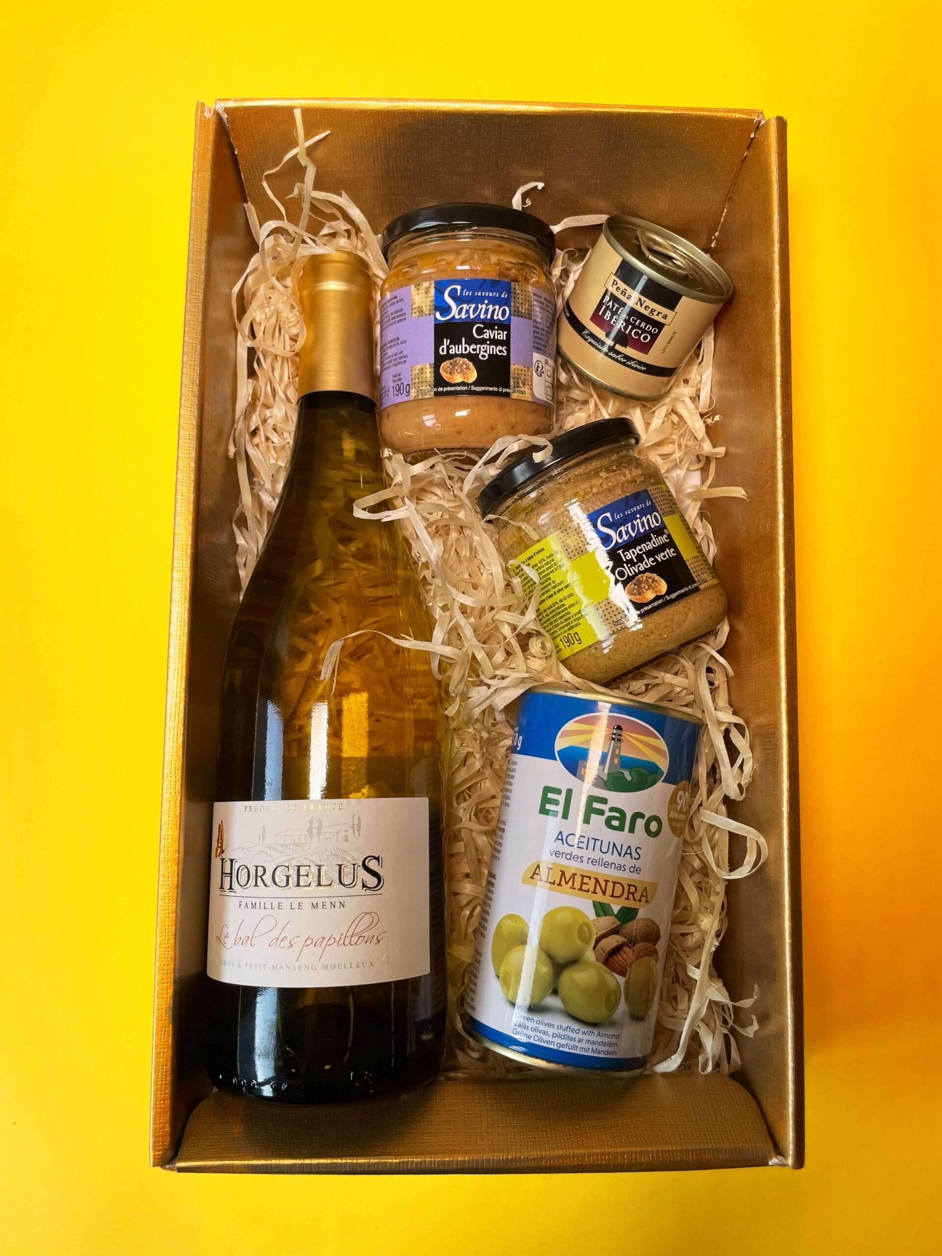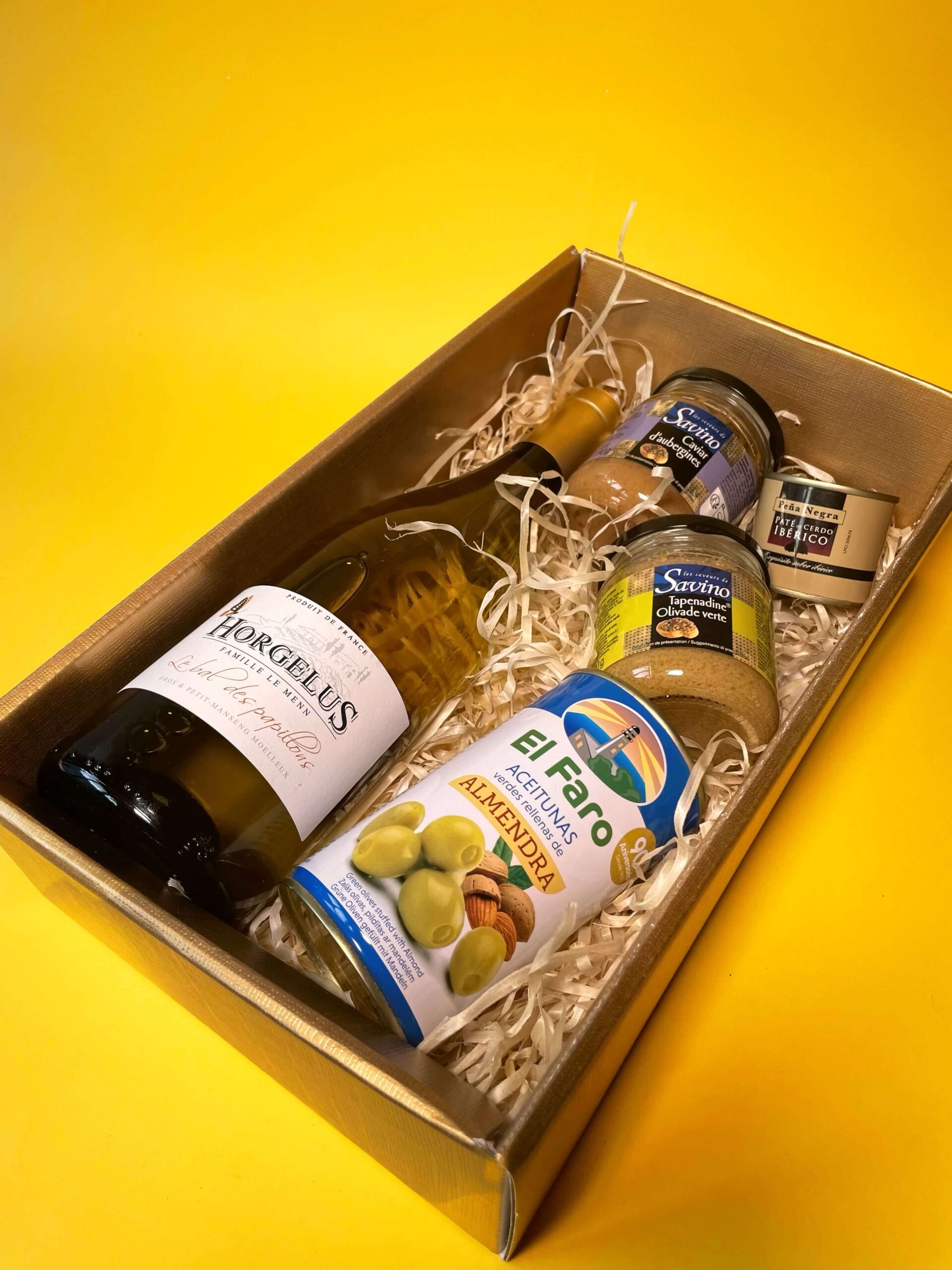 Zestaw Uczta Delikatesowa z winem Horgelus przeniesie Cię w klimat śródziemnomorskiej kuchni, łącząc owocowe wino z oliwkami nadziewanymi migdałami i tapenadą. Idealny na eleganckie spotkania lub chwile relaksu, to propozycja dla miłośników południowych smaków, która zachwyci każdego .