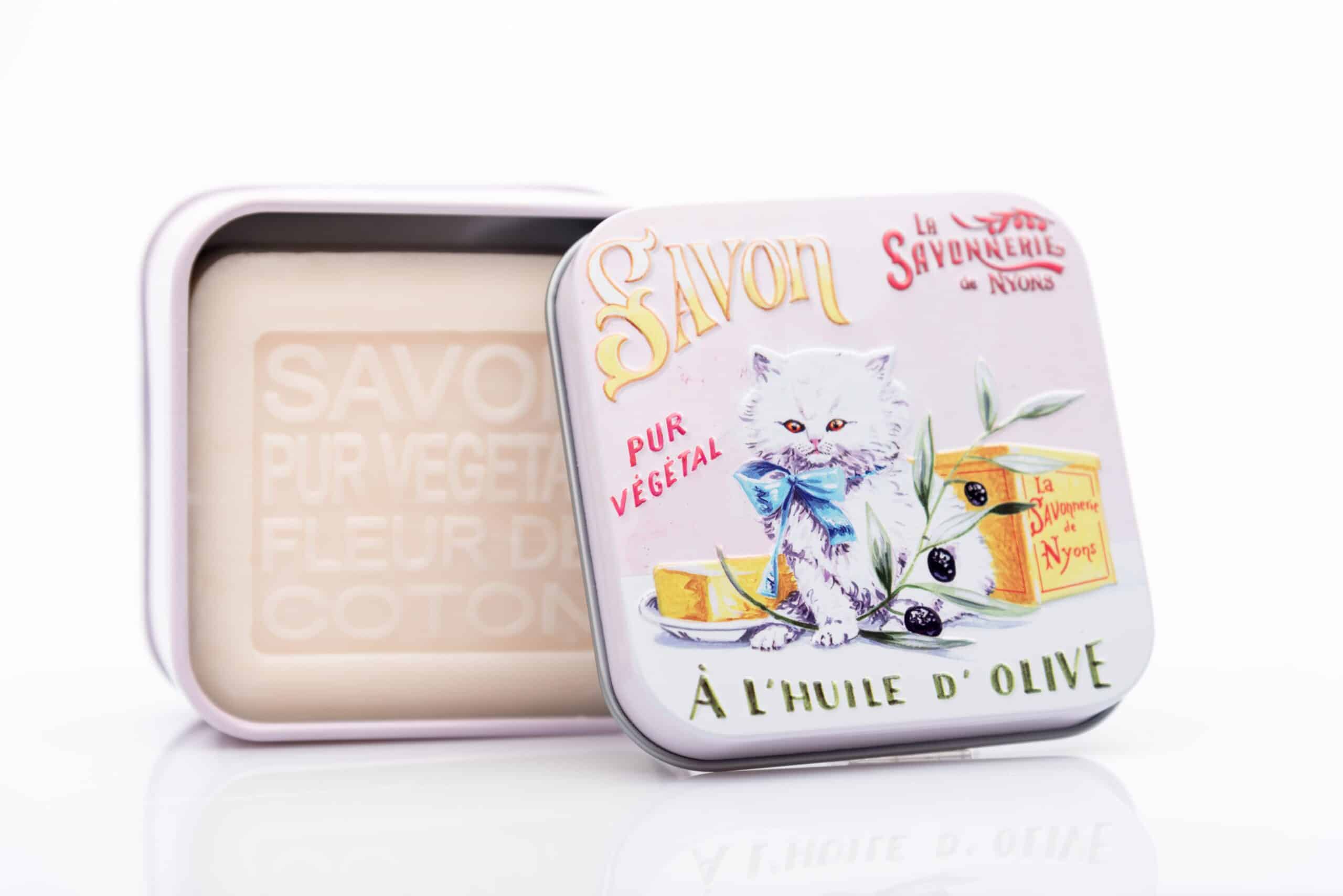 Prowansalskie mydło Kwiat Bawełny BIO w metalowym pudełku „Perski Kot” 100g