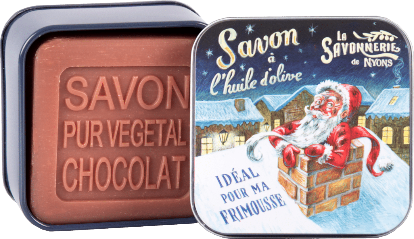 Prowansalskie mydło czekolada BIO w metalowym pudełku „Mikołaj w kominie” 100g