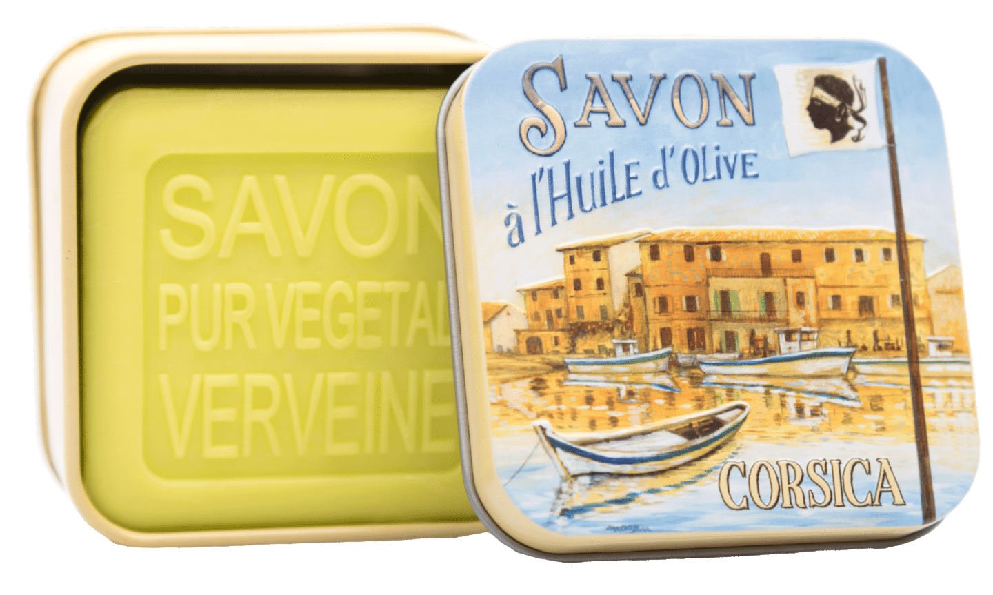 Prowansalskie mydło z werbeny BIO w metalowym pudełku „Wybrzeże Korsyki” 100g