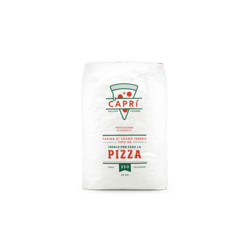 Włoska mąka do pizzy Caprì 350 typu "00", to doskonały wybór do pizzy wymagającej średnich czasów fermentacji (12-36 godzin). Jest wszechstronna, idealna do przygotowywania pizzy neapolitańskiej oraz innych ciast, które fermentują w temperaturze pokojowej lub w komorze fermentacyjnej.