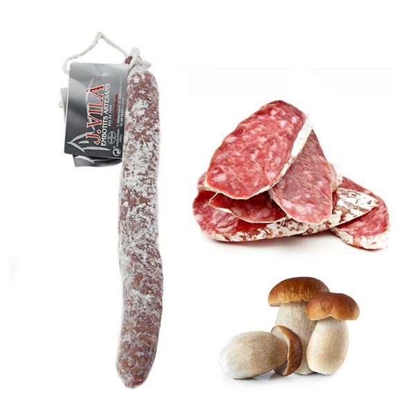 Fuet Extra z grzybami to hiszpańska wędlina, która łączy tradycyjny smak fuetu z subtelnymi nutami leśnych grzybów. Miękka, dojrzewająca tekstura wędliny i jej delikatny, mięsny smak sprawiają, że jest to doskonała przekąska. Idealnie komponuje się na desce wędlin, w tapas oraz w sałatkach. Wersja z grzybami wprowadza do klasycznej receptury nowoczesny, wyjątkowy akcent smakowy.