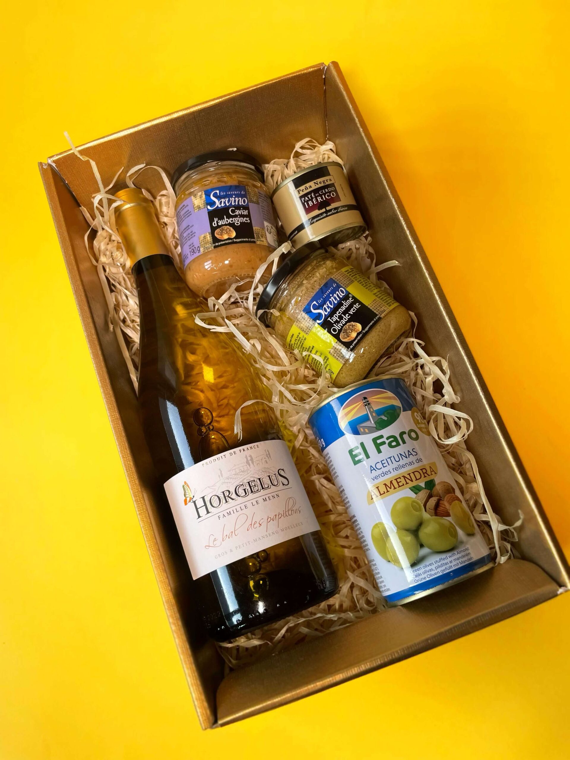 Zestaw Uczta Delikatesowa z winem Horgelus przeniesie Cię w klimat śródziemnomorskiej kuchni, łącząc owocowe wino z oliwkami nadziewanymi migdałami i tapenadą. Idealny na eleganckie spotkania lub chwile relaksu, to propozycja dla miłośników południowych smaków, która zachwyci każdego .